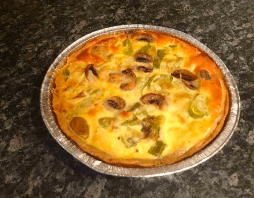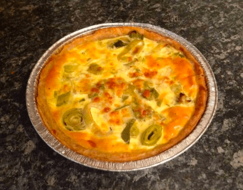 Leek, Mushroom & Vegan Cheese: As above, plus 6 sliced mushrooms sautéed in vegan butter.